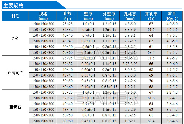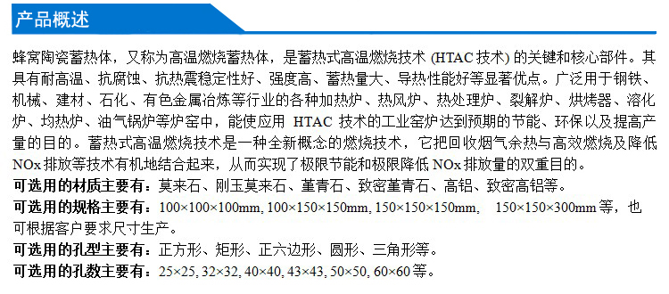蜂窩陶瓷蓄熱體